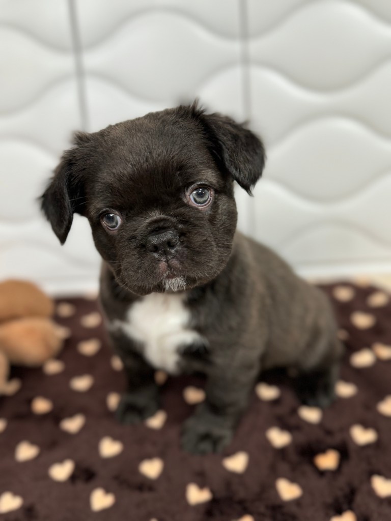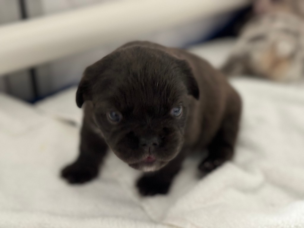 Born March 14, Bear is a female solid chocolate full fluffy. She’s AKC registered. DNA records are pending, but will be available upon request.