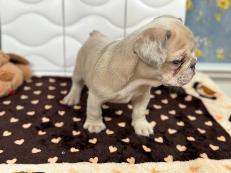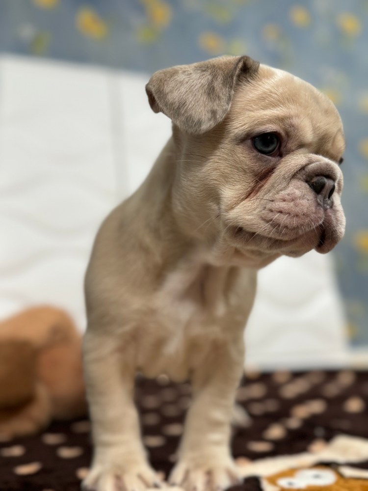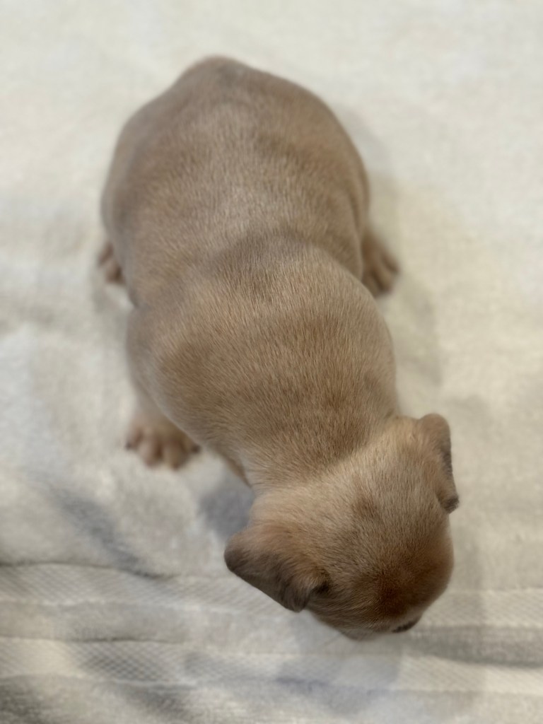 Born March 14, Pearl is a female fawn merle, fluffy carrier. She is AKC registered. DNA records are pending, but will be available upon request.