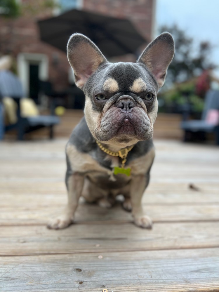 Meet Tony Bark, our handsome lilac and tan French Bulldog, who carries fluffy. He has a fantastic build: compact, short legs, round head. This proven stud not only looks great, but also has a wonderful temperament.